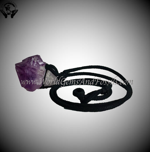 Beautiful, hand made Amethyst necklace on black cord. Point Size: 1"-1.5" long. BULK PURCHASING DISCOUNT: 3 pcs $4.85/ea, 10 pcs 4.60/ea.