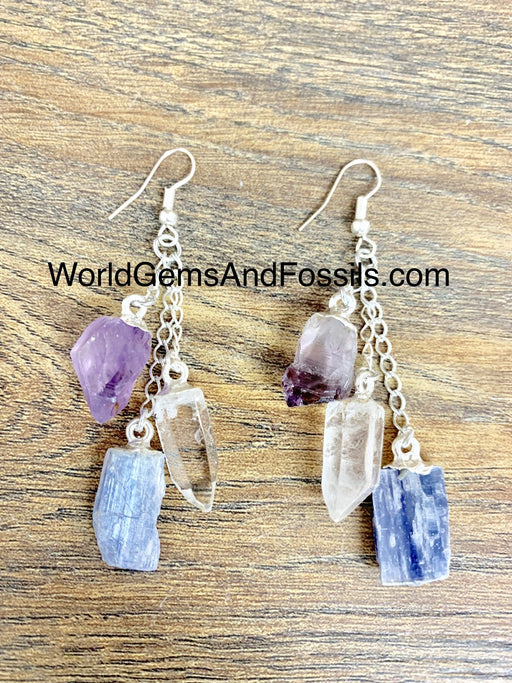 Amethyst Quartz Kyanite Three Point Earring