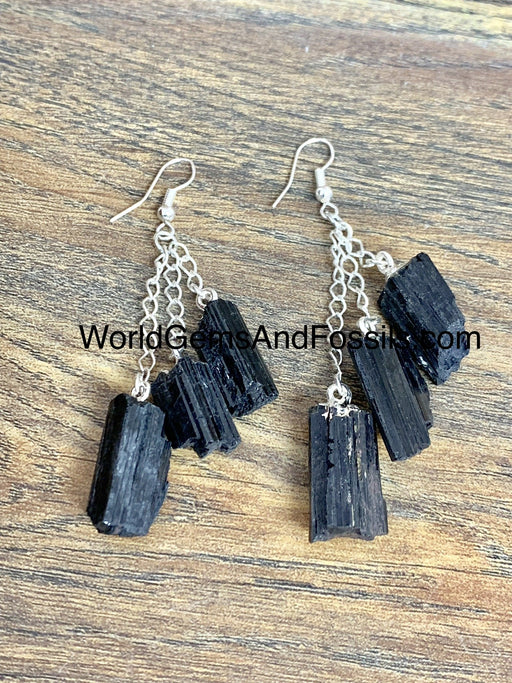 Black Tourmaline Three Point Earring