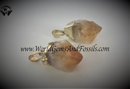 Beautiful, top quality gold plated Citrine pendants. Size: 1" long, approximately. Bulk PURCHASING DISCOUNT: 5 pcs $2.75/ea, 25 pcs $2.50/ea.