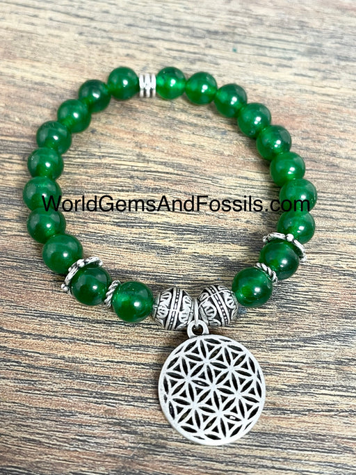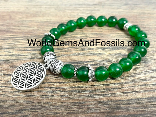 Jade Bracelet With Flower Of Life Charm. Size: 8mm