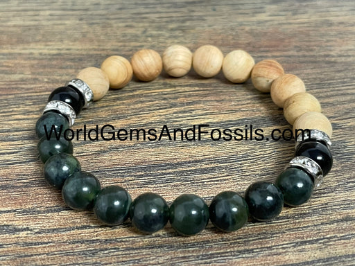 Palo Santo Nephrite Jade Bracelet. Size: 8mm. Quantity Prices $3.99/Pc for 1-9 Pcs$3.85/Pc for 10 Pcs$3.65/Pc for 30 Pcs$3.50/Pc for minimum of 50...