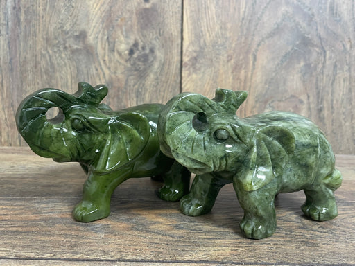 Beautiful carved Jade Elephant. Size: 4.3" x 2", 1 lb, approximately. Quantity Prices $16.99/Pc for 1-5 Pcs$14.99/Pc for minimum of 6 Pcs