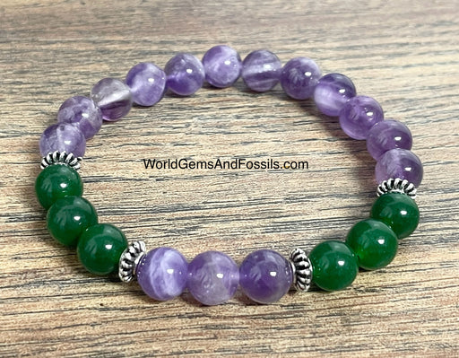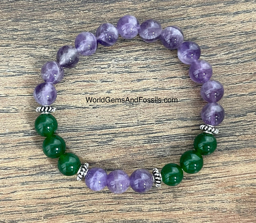 Amethyst Jade Bracelet. Size: 7.5", 8mm. Quantity Prices $2.95/Pc for 1-10 Pcs$2.80/Pc for 11-49 Pcs$2.60/Pc for 50-99 Pcs$2.45/Pc for minimum of 1...