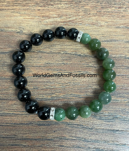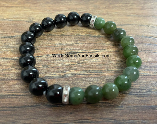Black Tourmaline Nephrite Jade Bracelet 8mm