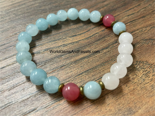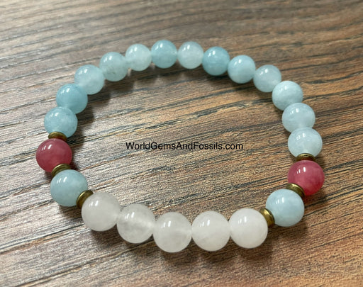 Aquamarine + Red Jade + White Jade Bracelet. Size: 8mm Quantity Prices $2.45/Pc for 1-10 Pcs$2.30/Pc for 11- 49 Pcs$2.15/Pc for 50-99 Pcs$1.99/Pc ...