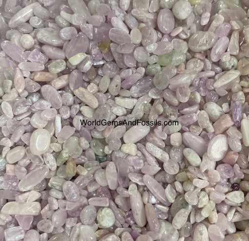 Kunzite Chip Stones. Size: 6-9mm 1lb. Quantity Prices$9.99/LB for 1-10 LB(s)$8.50/LB for 11 - 43 LB(s)$7.99/LB For minimum of 44 LB(s)