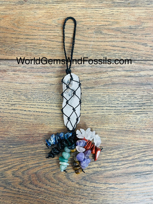 Clear Quartz Car Mobile with Chakra Beads. Size: 6", approximately. Quantity Prices $5.99/Pc for 1-20 Pcs$5.50/Pc for 21-49 Pcs$4.99/Pc for minimu...