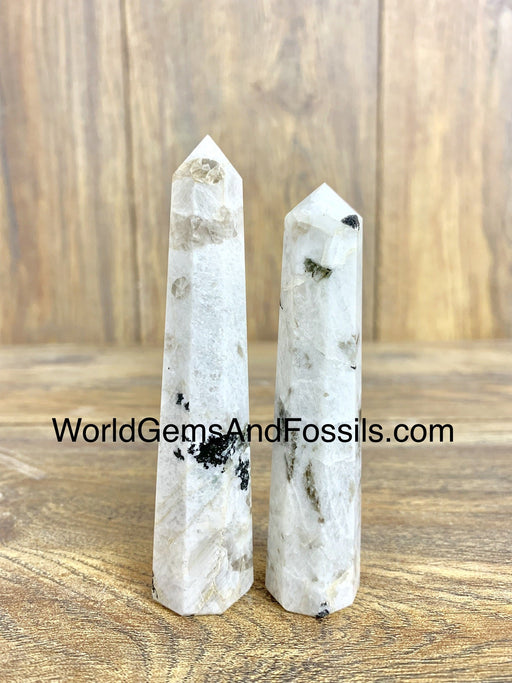 Rainbow Moonstone Point 3.5"-4.5", approximately.