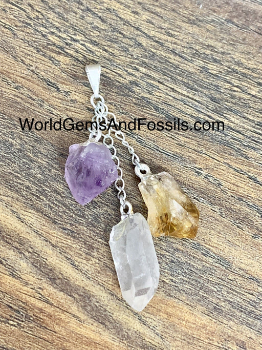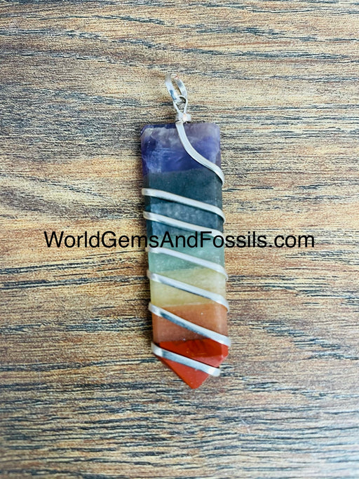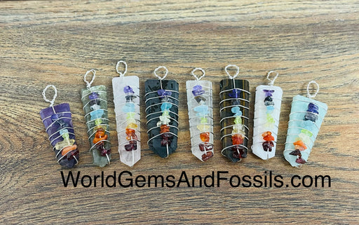 Gemstone Flat Point Pendant With Chakra Stones 3pc Set