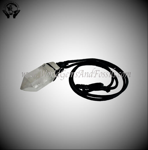 Beautiful, hand made clear Quartz necklace on black cord. Point Size: 1"-1.5" long. BULK PURCHASING DISCOUNT: 3 pcs $4.85/ea, 10 pcs 4.60/ea.