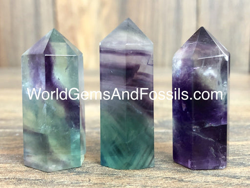 Fluorite Points. Size: 70-80mm x 20mm, approximately.