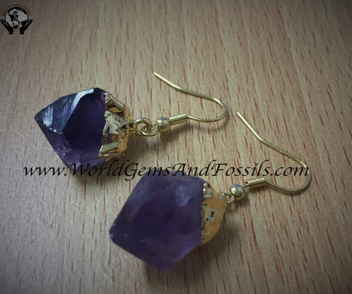 Beautiful gold-plated Amethyst point earrings. Stone size: 1.5-2 cm long.