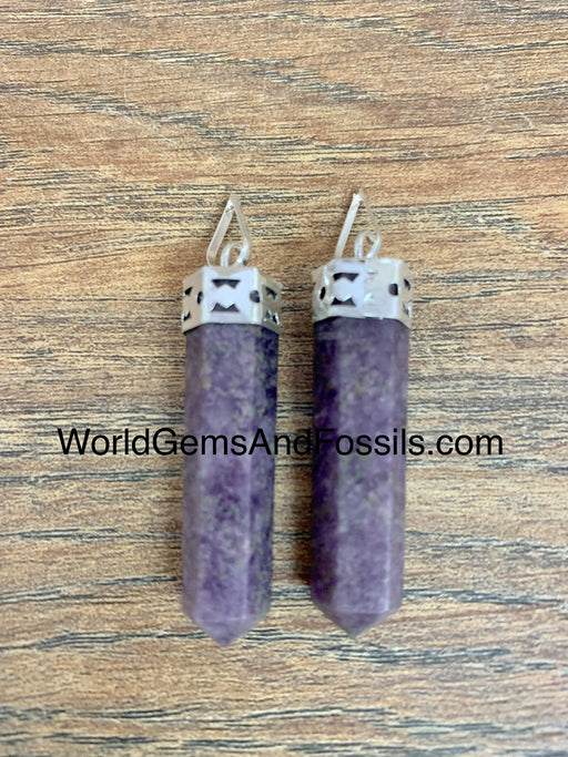 Lepidolite Point Pendants. Size: 1.75", approximately.