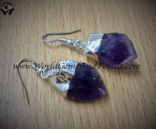 Beautiful silver plated Amethyst point earrings. Stone size: 1.5-2 cm long.