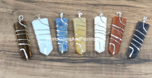 Mixed Gemstone Pendant Wrapped Flat Point.