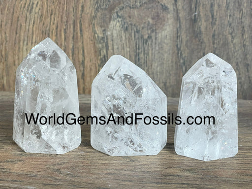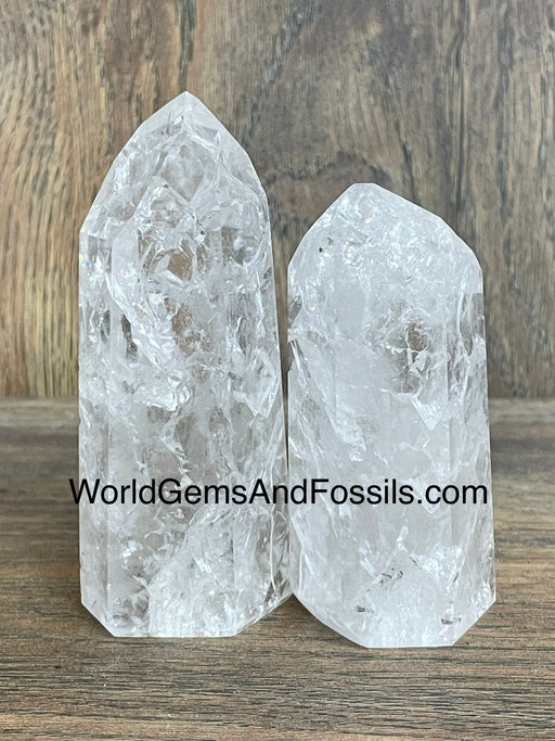 Beautiful, polished Crackle Clear Quartz points. Size: 2.5”-3.9”, approximately. Quantity: 1 lb, 3-4 points.