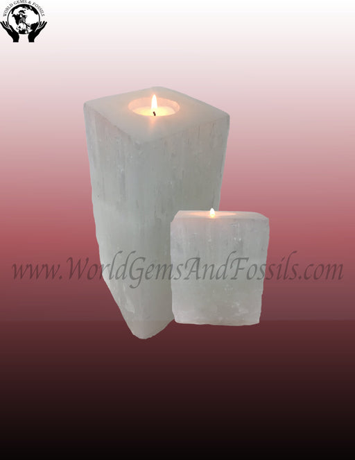 6" Selenite Rectangular Candle holder White