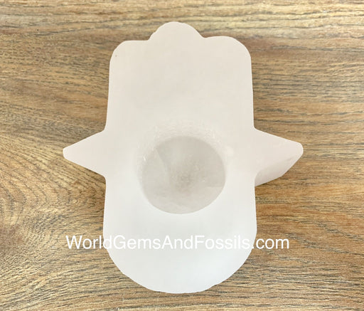 Selenite Candle Holder Hamsa Hand