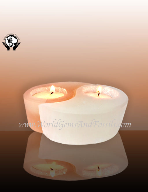 Selenite Yin Yang Candle Holder White & Orange